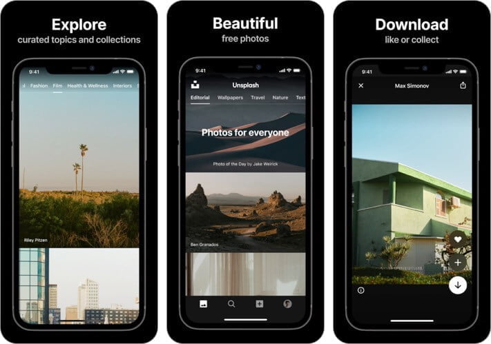 Vaihtoehtoisesti voit selata monipuolisia luokkia, kuten luonto, ihmiset, arkkitehtuuri, muoti, elokuva, matka, historia jne. Voit tallentaa ja luoda suosikkikuvien kokoelmia nopeaan pääsyyn tarvittaessa. Lisäksi iPadissa Unsplash soi hyvin muiden sovellusten kanssa - voit vetää suosikkikuvat mihin tahansa sovellukseen, joka tukee Drag & Drop -tapahtumaa, kuten avainsanaa, sivuja ja muistiinpanoja. Lisäksi sovellus toimii myös erinomaisena taustakuvien lähteenä.