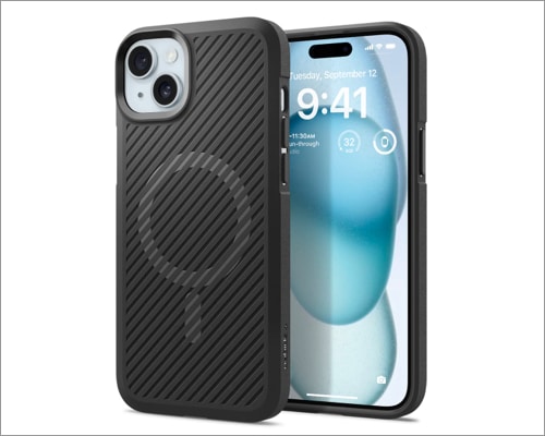 Spigenin puskurin tapaus pyrkii täydelliseen tasapainoon suojauksen ja tyylikkyyden välillä. Sillä on erottuva kuviosuunnittelu ylimääräiselle otteelle. Lisäksi sen kiillotettu matta ulkonäkö ei kiinnitä sormenjälkiä. Lisäksi Spider Web TPU -muovaus sisäpuolella imee iskuja ja iskuja.