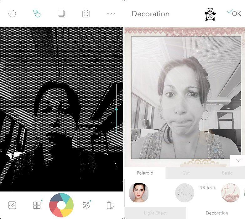Kun olet ottanut valokuvan, voit pelata monilla tehosteilla vain koskettamalla nimeä. Jotkut tehosteet on myös mahdollista päällekkäin antaa sille ainutlaatuinen kosketus, ja jos et pidä tuloksesta, voit aina hylätä muutokset ja aloittaa alusta.