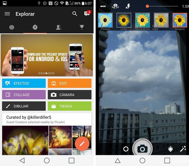 Tämä sovellus on luovuudellemme vapautuva keskus. Sen lisäksi, että hänellä on oma ohjelmisto kameran hallitsemiseksi, on suuri käyttäjäyhteisö, joka jakaa viimeisimmät luomuksensa heti. Picsartin avulla voit retusoida suosikkikuvasi myös sen jälkeen kun olet ottanut ne.