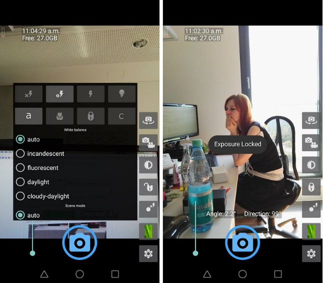 Se on yksiParas kamerasovellus Androidille.Kameran avulla voit asettaa vaihtoehdot suljinopeudelle, tarkennukseen, valkotasapainoon tai valotuksen kompensoimiseen. Lisäksi voit tallentaa kuvia häviöttömään raa'an muotoon. Kun seuraat kuvia, voit piirtää sitten koko anturitietovalikoiman.