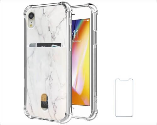 OddSS on valmistanut iPhone XR: n kortinpidike koteloita marmorikuviolla. Se on visuaalinen herkku ja erittäin ohut kuljetuksen helpottamiseksi. Tämä tapaus lisää vain 1,5 mm: n paksuuden iPhoneen, on tarkka katkaisut kaiuttimille, porteille ja painikkeille.