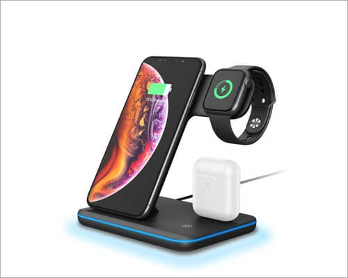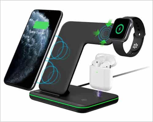 Jos etsit edullista vaihtoehtoa MangoTek-monilataiselle, tämä on sinulle vaihtoehto. Saat iPhone-jalustan, jossa on salamayhteys sisäänrakennettu, Apple Watchin latausteline ja QI-latausmatto, jonka voit laittaa AirPods-kotelon. Suunnittelu, se näyttää hieman vaalealta. Hinnoittelu on kuitenkin fantastinen 30 dollarilla.
