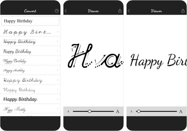 Toisin kuin mikään lastenkohtainen sovellus, tämä ei opeta sinulle kirjettä kirjeellä. Sen sijaan voit kirjoittaa suosikkisanasi, sanotaan nimesi ja muuntaa se moniksi kursiivisiksi tyyleiksi.