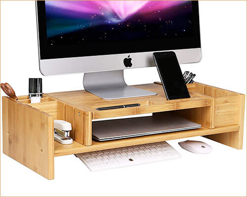 Se nostaa tietokoneesi silmätasolle parantaen siten katselua. Siten työajat eivät rasitaa selkääsi. Lisäksi se luo 13 tuuman leveän tyhjän tilan, jossa kaikki pienet esineet voivat levätä turvallisesti.