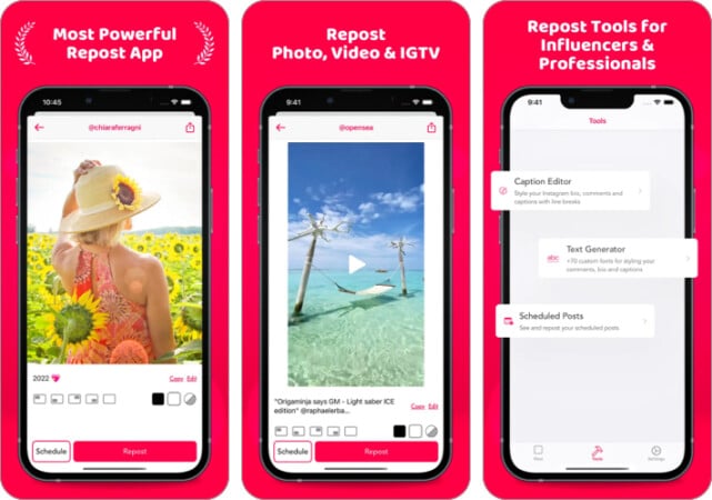 Tämä Instagram -ilmainen reposto -sovellus on yksi suosituimmista ja arvostetuimmista. Sovellus tarjoaa sinulle useita tärkeitä ominaisuuksia. Voit esimerkiksi lähettää, arkistoida ja tallentaa videoita Instagramiin.