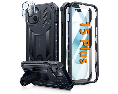 Kameran ympärillä olevien kiinteiden karkeiden reunojen ja korotettujen kehysten lisäksi saat sisäänrakennetun näytönsuojan suojaamaan näytön. Nauti lisäksi elokuvista maisematilassa ergonomisen potkun kanssa takana. Vaikka tämä tapaus lisää ylimääräistä suuruutta iPhone 15 Plus -sovellukseen, voit kantaa sitä helposti irrotettavalla kääntyvällä vyönpidikkeellä potkun ympärillä.
