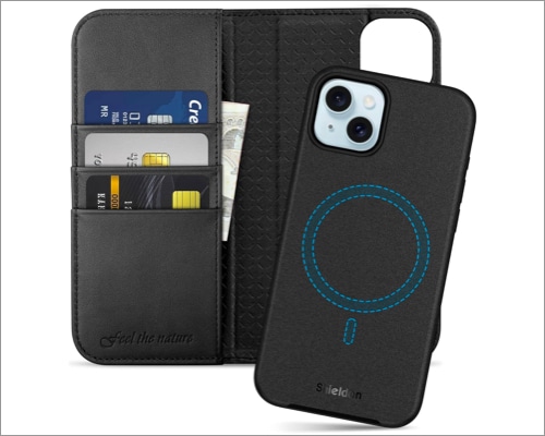 Shieldon on täällä hämmästyttää teitä kaikkia. Sen lisäksi, että tämä tapaus on kätevä lompakko, tämä tapaus tarjoaa lopullisen suojan uudelle ja tyylikkäälle iPhone 15 Plus -sovelluksellesi. Aidasta lehmännahasta muotoiltu, tämä tapaus herättää tyylikkyyttä ja hienostuneisuutta.