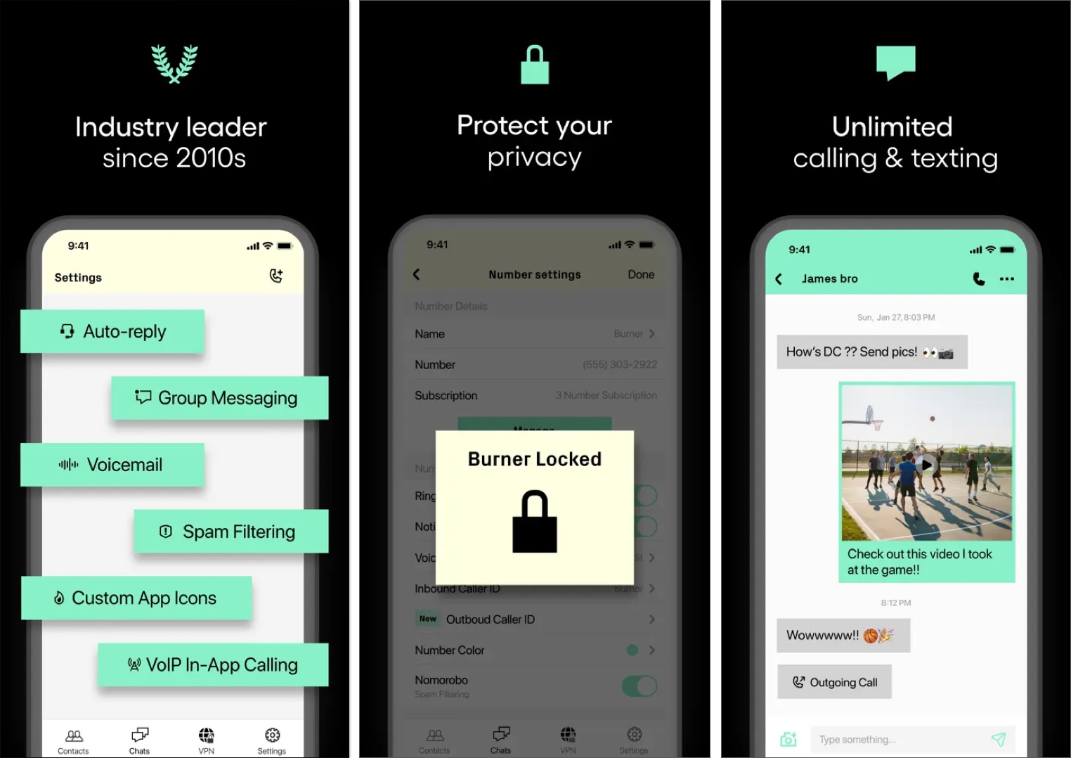 Burner on melko hieno sovellus, jonka avulla voit luoda useita kertakäyttöisiä puhelinnumeroita. Voit käyttää näitä mitä haluat ja sitten poistaa tai "polttaa" ne, kun olet valmis. Voit soittaa ja lähettää tekstiviestejä tavalliseen tapaan pitäen oikean puhelinnumerosi yksityisenä. Tämä tekee siitä täydellisen myydä asioita verkossa, treffailussa tai muussa tilanteessa, jossa haluat suojata yksityisyyttäsi.