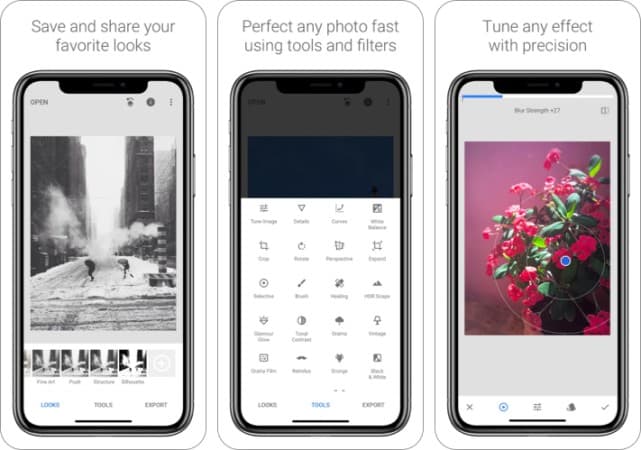 Snapseed on erinomainen valokuvien muokkaustyökalu Googlen talosta. Se rajoittaa kuitenkin vain 38 ainutlaatuisen tekstityylin. Lisäksi voit mukauttaa tekstin sijainnin, koon, värin ja opasiteetin.
