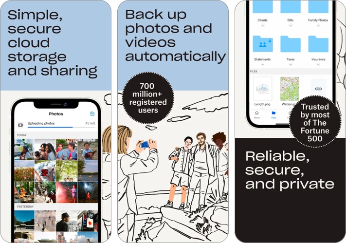 Jos laitteesi ovat täynnä tiedostoja, sinun on aika siirtyä Dropboxiin. Synkronointipalvelun avulla voit ladata, tallentaa ja siirtää valokuvia, tiedostoja, videoita, asiakirjoja ja muita sen suojattuun pilvitallennustilaan. Kun olet siirtänyt, voit käyttää tallennettuja tiedostoja mistä tahansa, jopa offline-tilassa. Tiedoksi, portaalin avulla voit tarkastella yli 175 eri tiedostotyyppiä ilman erityisiä ohjelmistoja.