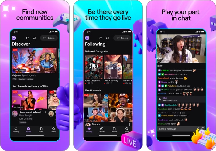 Toisin kuin yleinen mielipide, Twitch ei rajoitu vain pelaamiseen. Täällä voit liittyä yhteisöihin, jotka tutkivat erilaisia kiinnostuksen kohteita, kuten ruokaa, elämäntapaa, muotia, motivaatiota, taidetta, investointeja ja paljon muuta. Voit etsiä suosikkigenrejäsi ja seurata saman alan striimareita. Live-chat-ominaisuuden avulla voit olla vuorovaikutuksessa heidän kanssaan vlogeissa ja streameissa.