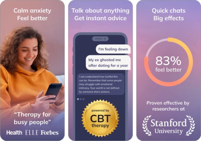Lisäksi löydät sovelluksesta useita mindfulnessiin, positiiviseen ajatteluun ja tunteiden hallintaan keskittyviä aktiviteetteja. Lisäksi asiantuntijaterapeutit kuroivat kaikki CBT-terapiaistunnot, joten sinun ei tarvitse huolehtia haitallisista tuloksista. Voit ajoittaa istuntojasi milloin tarvitset niitä.