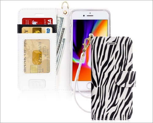 Tämä värikäs ja käytännöllinen folio on täydellinen, jos rakastat funky -ilmettä. On olemassa kolme sisäänrakennettua korttipaikkaa ja yksi sivutasku välttämättömillesi. Voit käyttää sitä lompakon sijasta, jos haluat olla minimalistinen. Rannehihna tekee siitä vielä helpompaa kuljettaa.