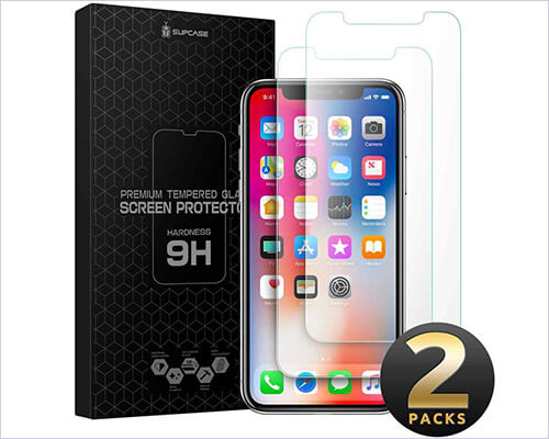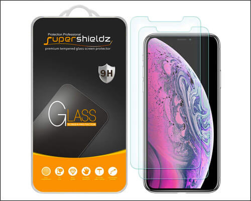 SuperShieldz on suunnitellut ihanteellisen näytönsuojan iPhone XS Maxille. Siinä on kaarevat reunat, joilla on tärkeä rooli koko näytön puolustuksen tarjoamisessa. 9H -kovuus yhdessä 99,99% HD -selkeyden kanssa tekevät siitä huipputason.