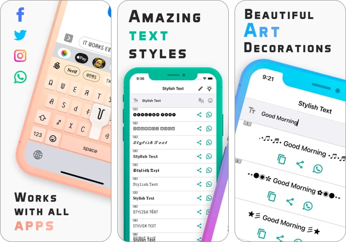 Jos haluat kirjoittaa koristeellisissa ja tyylikkäissä kirjasimissa, harkitse tyylikästä tekstinäppäimistöä. Se tarjoaa tavallisen näppäimistön asettelun ja kyvyn kirjoittaa symboleja, hymiöitä ja jopa Kaomojia. Jos et tiennyt, Kaomojis on japanilaisia hymiöitä, joiden avulla voit ilmaista muutaman tunteen.