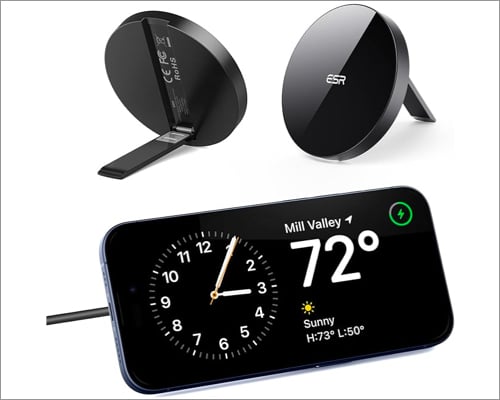 Tämä on-demand-jalusta ponnahtaa esiin, joten voit sijoittaa iPhonesi minne tahansa ja nauttia valmiustilasta latauksen aikana. Kevyellä alumiinirungolla varustettu langaton ESR-laturi on helppo kuljettaa mukana repussa tai jopa käsilaukussa.
