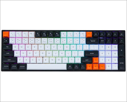 Jos etsit turhaa, MAC: n ei-nonsense-näppäimistöä, Epomaker Gk96: n tulisi olla kuuma luettelossasi. Näppäimistössä on 96 näppäintä ja se on yksi kompakteimmista tässä luokassa. Avainkytkimet voidaan myös vaihtaa mieltymyksesi kytkimiin, Cherry MX: stä Gateroniin.