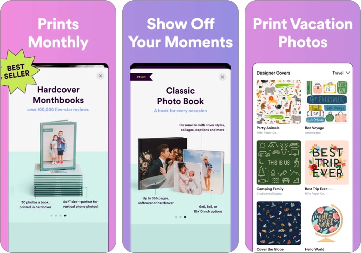 Chatbat -kirjat antavat sinulle ylellisyyden mennä luovaksi kuvien kanssa. Kuvien teemasta riippumatta chat -kirjoista muuttaa niistä tyylikkäitä valokuvakirjoja, joissa on pelkkä täydellisyys. Sovelluksessa on yksityiskohtainen pino käyttäjäystävällisiä mukautuksia kuvan kohdistamiseen, päivämäärään ja tyyleihin. Voit jopa lisätä kuvatekstejä kuviin, jos haluat. Lisää vain valokuvia suoraan iPhone -galleriastasi ja lähetä ne tulostamaan heti.