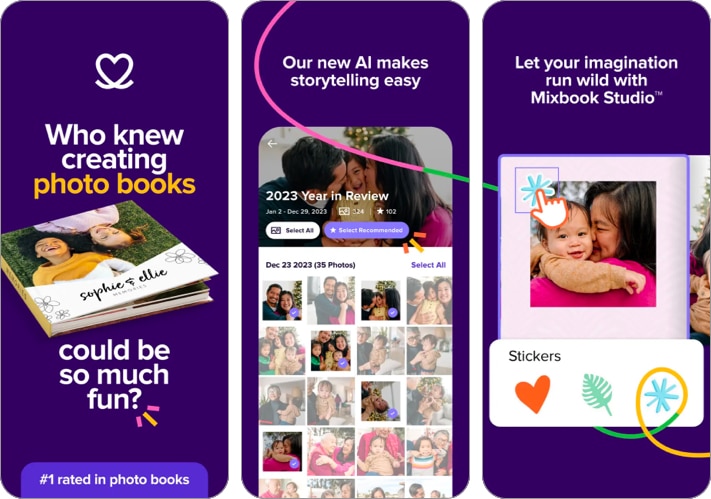 Rakastatko tarinoiden kutomista muistojen ympärillä? Jos kyllä, MixBook on sinulle paras iPhone -valokuvakirjasovellus. Tuhansien kauniiden teemojen avulla Mixbook Studio antaa sinun suunnitella täydellisen kirja -albumin, kuten ammattimainen luoja muutamassa sekunnissa. On ainutlaatuinen asettelu onnellisiin tilanteisiin, kuten lomat, häät, valmistumiset jne.