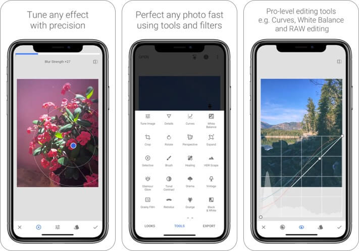 Lisäksi se antaa sinulle samat työkalut, joita ammatilliset valokuvat käyttävät räätälöityjen suodattimien luomiseen tyhjästä. Käytä muokkauksia ja suodattimia useisiin valokuviin samanaikaisesti ja nauti monista muista työkaluista, kuten muotokuvan hämärtämisestä, valikoivista värityökaluista ja jopa videon muokkaamisesta.