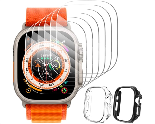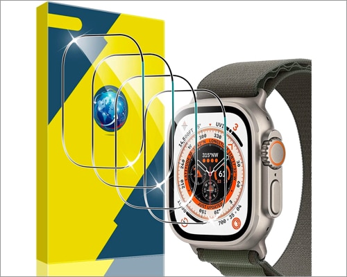 Tämä on se, jos haluat all-in-one-suojavartijan kallille Apple Watch Ultralle. Newways tarjoaa 6 suojaavan karkaistun lasikalvoa, 2 PC -puskuria ja helppoa asennussarjaa. Myös suojaava 9H -karkaistu kalvo tarjoaa HD -selkeyttä eikä vähennä näkyvyyttä edes suorassa auringonvalossa. Lisäksi tuotemerkki on käyttänyt plasma -oleofobista pinnoitetta pintaan, mikä antaa sille sileän, herkän tekstuurin.