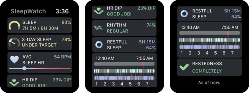Sleep Watch on jälleen yksi kykenevä kolmannen osapuolen sovellus, joka seuraa unta Apple Watch -sovelluksen avulla. Yhtiö väittää käyttävänsä keinotekoista älykkyyttä (AI) unen laadun mittaamiseen, seuraamiseen ja parantamiseen.