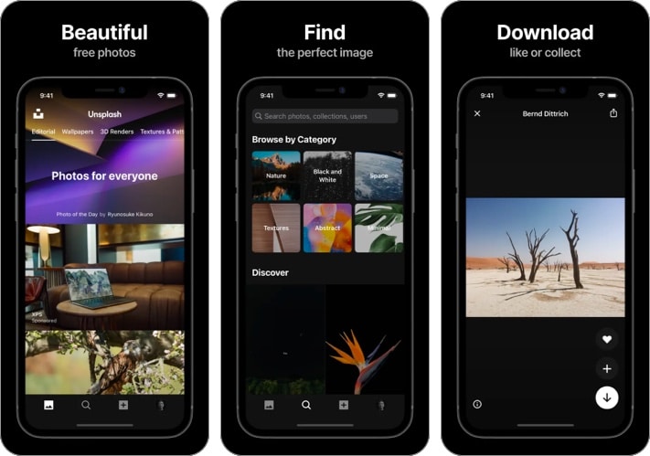 Entä jos haluat jakaa kuvia yhteisön kanssa? Unsplashilla on myös mahdollisuus siihen, ja voit olla osa hämmästyttävien ammatti- ja amatöörivalokuvaajien yhteisöä ympäri maailmaa. Joten miksi odottaa? Katso tämä ilmainen taustapaperisovellus iPhonelle nyt!