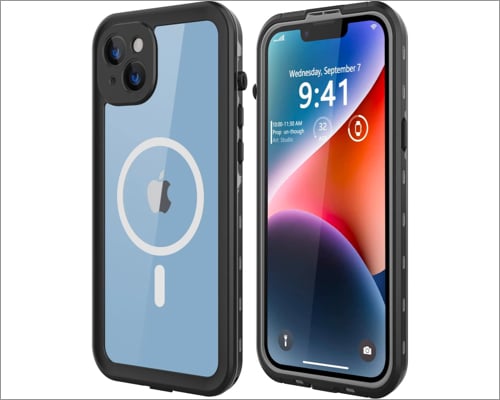 Jos etsit parasta suojaa kohtuulliseen hintaan, älä etsi enää ja saat Temdamin vedenpitävää koteloa. Sen mukana tulee IP68 -veden ja pölynkestävyyden luokitus ja kattaa iPhone 14 Plus tai 14 Pro Maxin edestä ja takaosasta. Se tarjoaa 14 jalkaa sotilaallisen pudotussuojan iskunkestävällä kotelolla.
