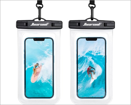 Hiearcool -yleinen vedenpitävä ratkaisu on paras valinta, jos et halua erillistä koteloa. Se on vedenpitävä laukku, joka pitää iPhonesi sisällä. On parasta, kun haluat ottaa valokuvia tai videoita vedenalaisena. Tämä IPX8-luokiteltu laukku pystyy pitämään laitteita jopa 7 tuuman kooltaan. Seurauksena on, että voit upottaa iPhonen tähän laukkuun jopa 100 jalkaa (tai 30 metriä).