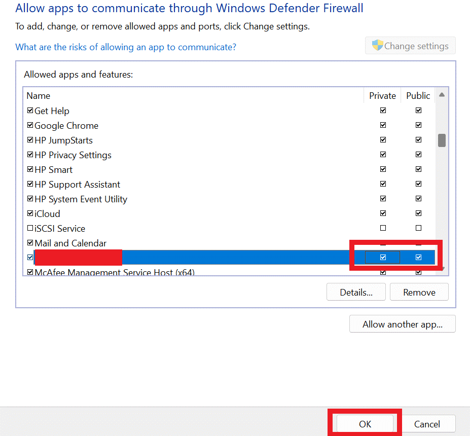 - Viimeisenä, mutta ei vähäisimpänä, tarkista, että ruudutJulkiset ja yksityiset verkottarkistetaan ennen napsauttamistaHyväMuutosten tallentaminen.