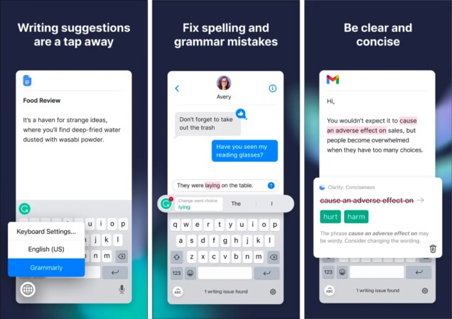 Kielioppi on yhden luukun ratkaisu oikolukutarpeitasi varten. Vaikka suurin osa kirjoittajista käyttää kieliopin laajennusta, sen näppäimistösovellus iPhonelle on aika hyödyllinen. Se tarjoaa reaaliaikaisia kirjoituskommentteja varmistaaksesi, että sisältölläsi on moitteeton kielioppi. Voit myös parantaa kirjoitustasi käyttämällä asiakirjaeditoria ja kirjoittamalla tilastoja.