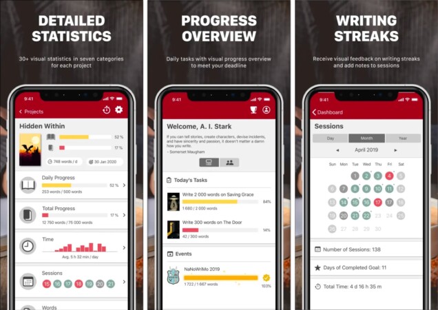 Kirjailijoiden on myös hiottava taitojaan ja kehitettävä kirjoittamisen tehokkuutta. Siksi olen sisällyttänyt tämän sovelluksen luetteloon. Voit suorittaa päivittäisiä tehtäviä, seurata projekteja kaavioiden ja kaavioiden avulla ja järjestää ne. Saadaksesi tarkan kirjoitusanalyysin 30+ erityistilastolla, aloita yksi kirjoitusistunto kerrallaan, työskentele kirjoitustottumuksissasi ja tuottaa enemmän.