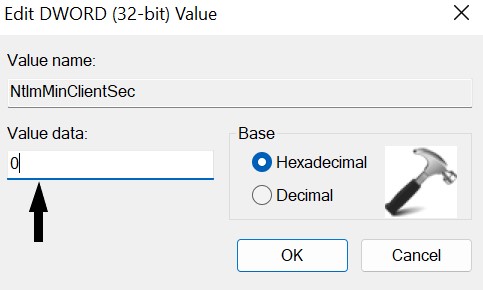 4. Hae kaksi dword -merkintää nimittäinNTLMMMINIENTSEC jaNtlmmInServersec,jacHange heidän arvotietonsa0 -40- tai 56-bittisen salauksen käyttämiseen tai niiden arvotietoihin20000000128-bittisen salauksen käyttämiseen.