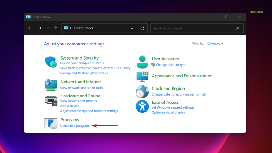 Napsauta Windows -hakupalkkia, kirjoitaOhjauspaneeli, ja napsauta sitä avataksesi.