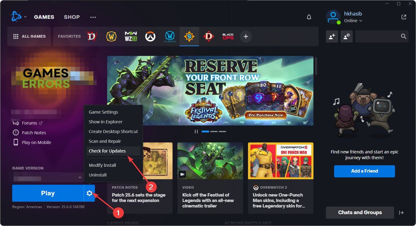 - Vuonnabattle.net -sovellus, napsautarataskuvakeDiablo 4 -peliä varten ja valitseTarkista päivitykset.