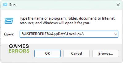 - Avoin ajo painamalla Win + R, kirjoita %UserProfile %AppDataLoCallow ja paina Enter.