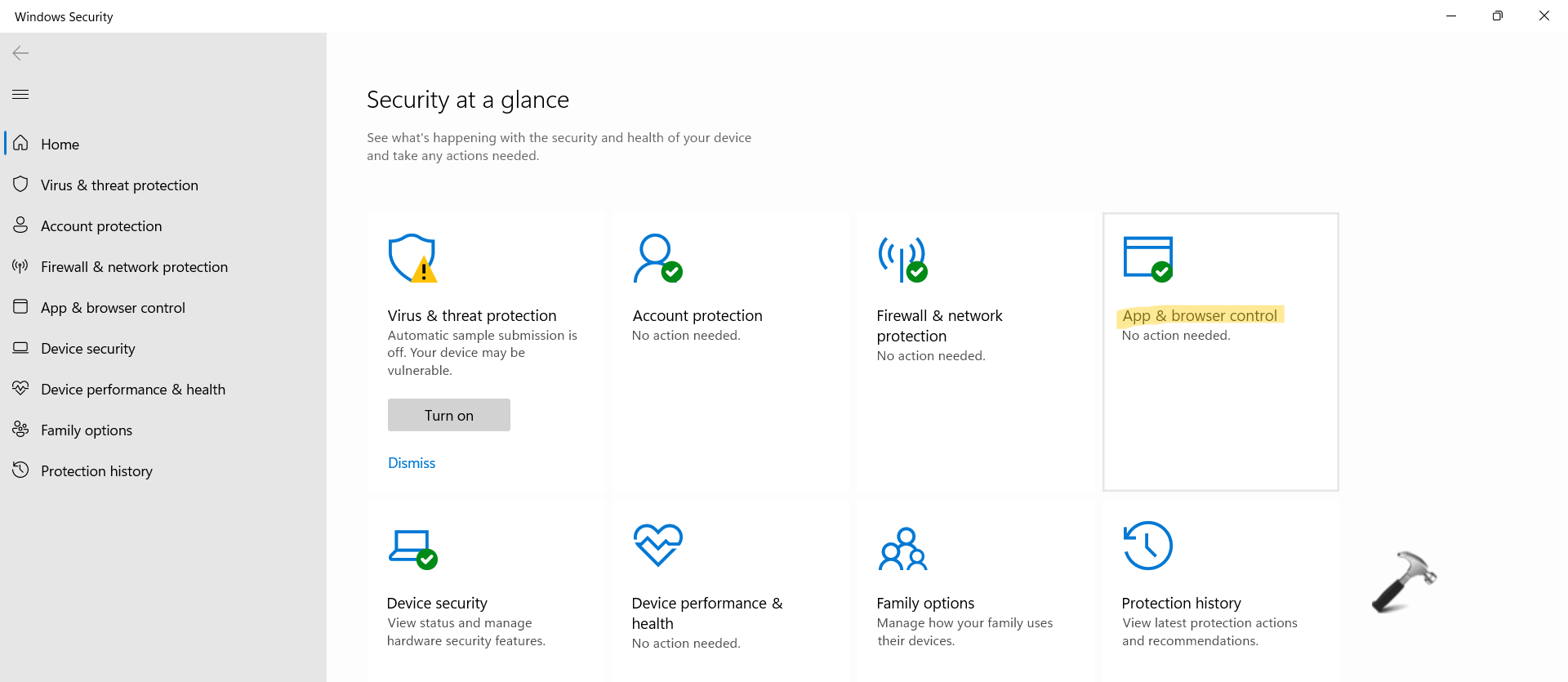 1.AvataWindows SecurityJa mennäSovellus- ja selaimen hallinta.