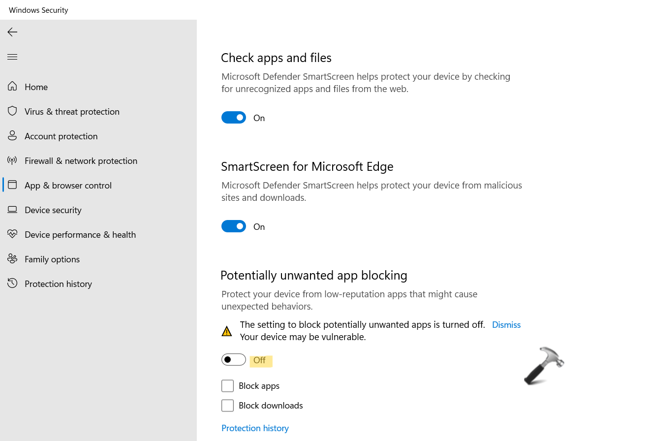 3.Tai muuten poista tämä ominaisuus käytöstä sammuttamallaEstää mahdollisesti ei -toivotut sovellukset.