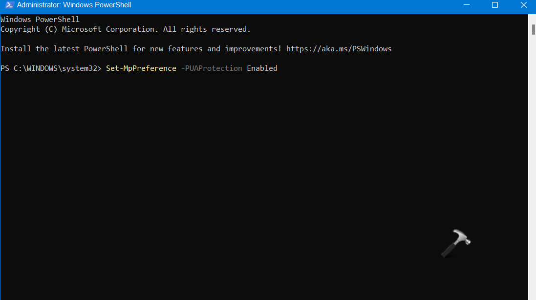 Set-MpPreference -PUAProtection Enabled