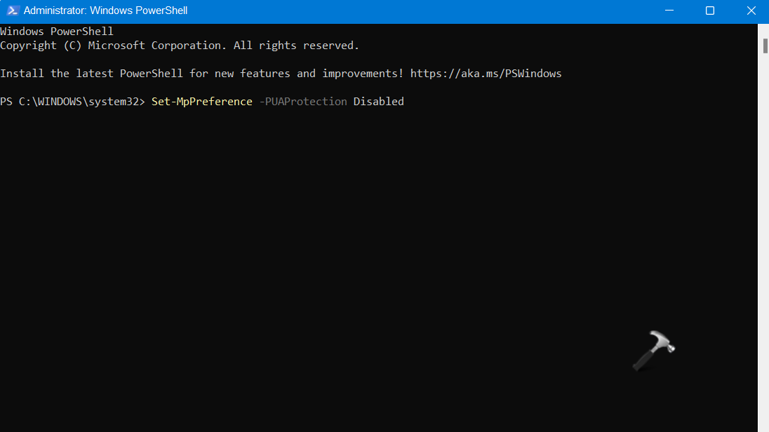 Set-MpPreference -PUAProtection Disabled