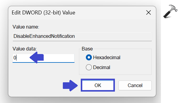 Napsauta hiiren kakkospainikkeella ilmoituksia = uusi = DWORD (32-bittinen) arvo, tyyppi ”Poista käytöstäpalautukset”.