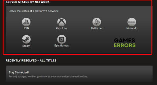 Tai voit tarkistaa palvelimen tilan verkon mukaan. Voit esimerkiksi valita,Höyryä-Xbox Live-PSNtaiEeppiset pelit.