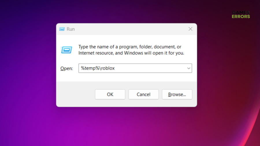 - Kirjoita ponnahdusikkunaan seuraavat:%Temp%Roblox.