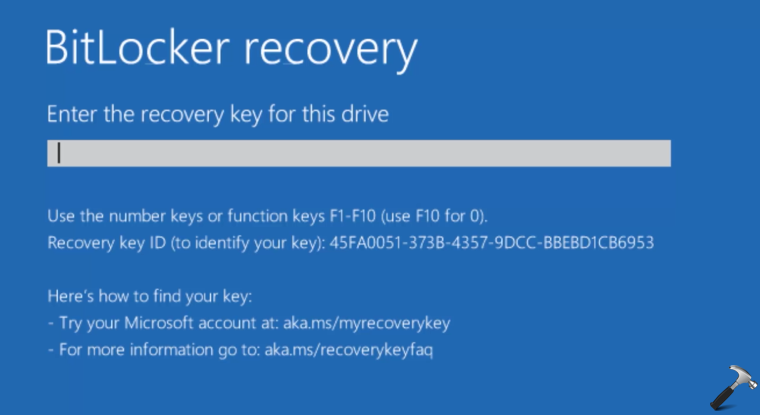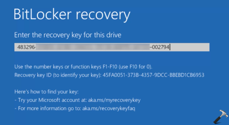 Kirjoita bitlocker -palautusnäppäin ja paina sitten Enter -näppäintä. Voit paikantaa bitlocker -palautusavaimen osoitteeseenhttps://account.microsoft.com/devices/recoverykey.