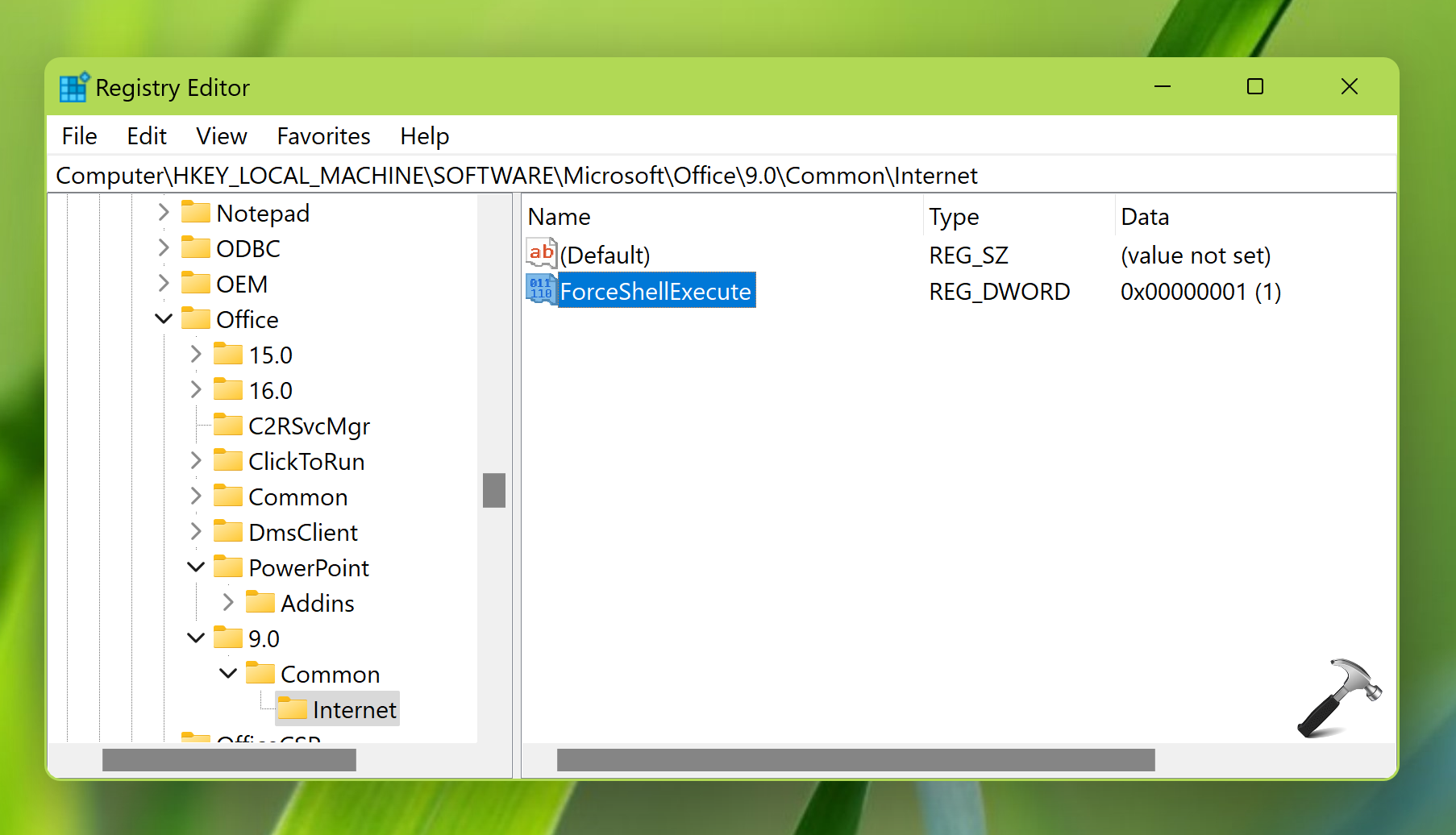 HKEY_LOCAL_MACHINESOFTWAREMicrosoftOffice9.0CommonInternet