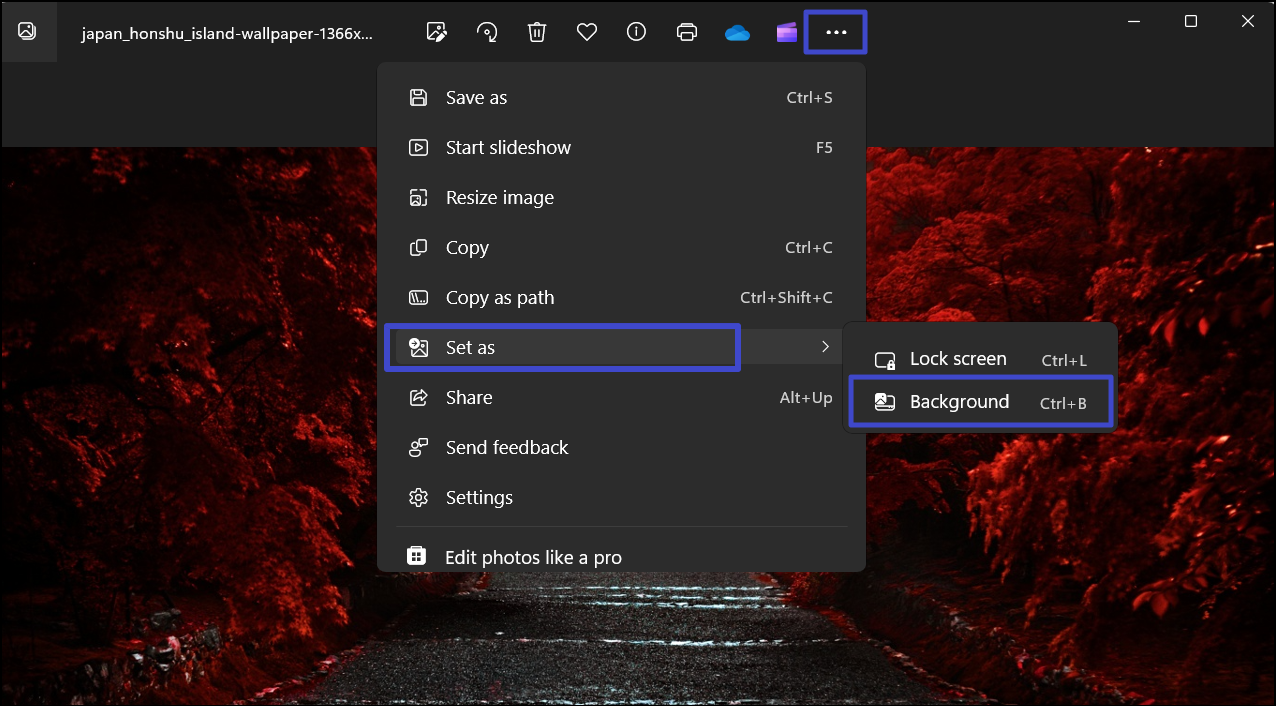 4. Napsauta kolme pistettä -painiketta, leiju yli “Asettaa jnak"Ja valitse"Tausta".