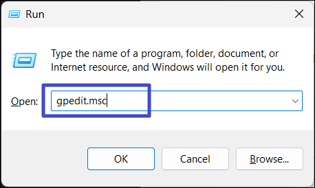 1. Avaa Run -komento, kirjoita “Gpedit.msc"Ja napsauta"Hyvä".