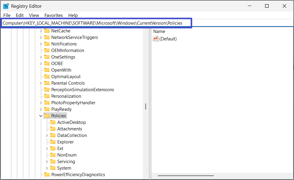 HKEY_LOCAL_MACHINESOFTWAREMicrosoftWindowsCurrentVersionPolicies