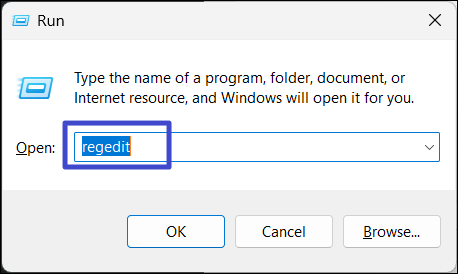 1. Paina Windows + R, kirjoita “Regedit ”Run -valintaikkunassa ja paina Enter.